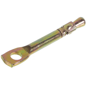 Анкер потолочный представляет собой стальной стержень с цилиндрической подвижной втулкой, конусообразным хвостовиком и ушком с отверстием. Материал основания - бетон и полнотелый кирпич. Применяется потолочный анкер для крепления светильников, подвесных потолков, электрокабелей, цепей и тросов.