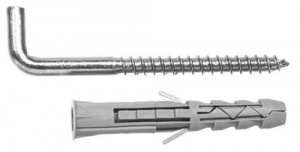 Характеристики и материал: дюбель изготовлен из полипропилена. Крючок изготовлен из оцинкованной стали.