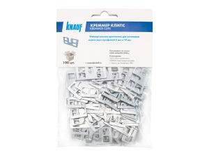 Крепление Кнауф Креммер клипс надежно прижимает профиль к саморезу, предотвращая возможные движения и изменения положения профиля. Кроме этого, данный тип крепления максимально плотно фиксируется к профилю, что позволяет сократить расход строительной смеси.