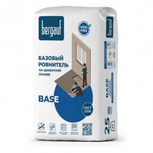 Bergauf Base — сухая смесь на основе песка и цемента с минеральными наполнителями и полимерными добавками с марочной прочностью М150. Из нее изготавливают строительный раствор для предварительного ручного выравнивания полов. С помощью ровнителя устраняются серьезные дефекты, например, глубокие сколы и выбоины. В результате использования Bergauf Base получается гладкая, ровная безусадочная поверхность, стойкая к возникновению трещин.