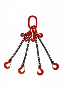 Конструктивно строп цепной четырехветвевой состоит из четырех легированных цепей класса прочности не менее 8. Цепи крепятся к основному концевому звену при помощи двух подзвенников. На конце каждой цепи установлен крюк. 4СЦ используется для перемещения и подъема грузов различного размера и назначения. Обладает высокой устойчивостью к коррозии, действию высоких температур и агрессивных сред.