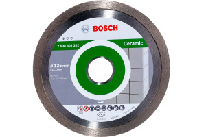 Алмазный диск Bosch применяется для резки декоративной плитки. Диск обеспечивает ровные края без сколов при работе с керамической плиткой. Сегмент с алмазной крошкой наносится непосредственным спеканием.